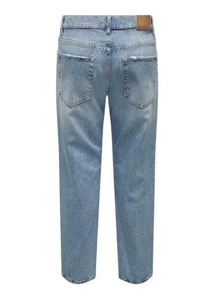 Jeanshose Only and Sons. Modell Sedge. Hellblaue Denim. Verwaschener Effekt. Gerader Schnitt. Gewebe ohne Elastan. Fünf Taschen.
