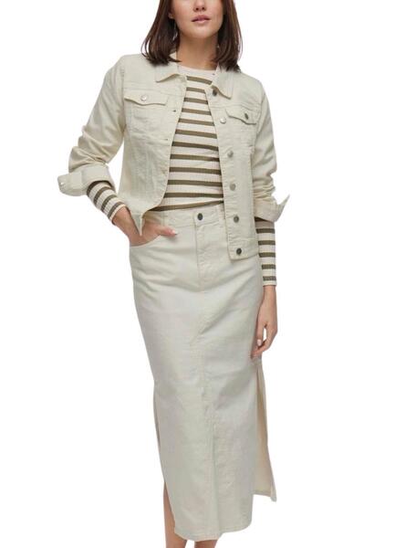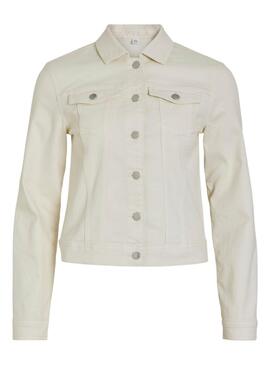 Jeansjacke Vila. Modell Vinus. Farbe gebrochenes Weiß. Verschluss mit Metallknöpfen. Seitentaschen. Brusttaschen mit aufgesetzten Taschen. Reguläre Passform. Elastischer Stoff.