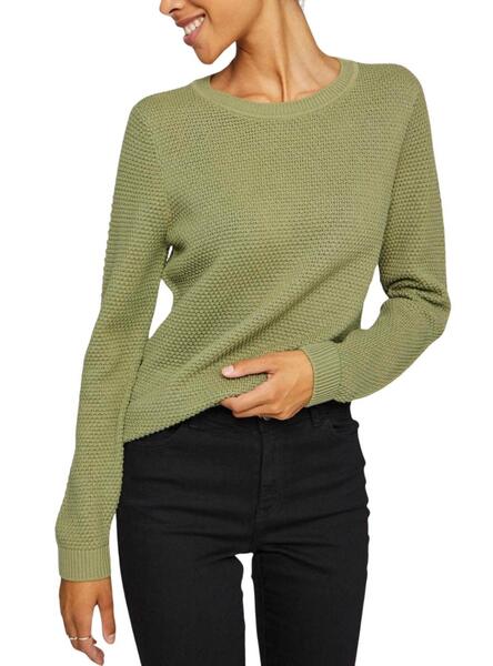 Vila Pullover. Modell Vidalo. Grüne Farbe. Runder Halsausschnitt. Gerippte Abschlüsse. Reguläre Passform. Texturierter Stoff.