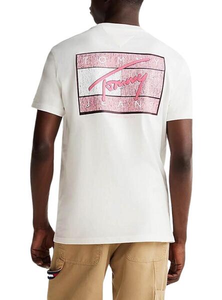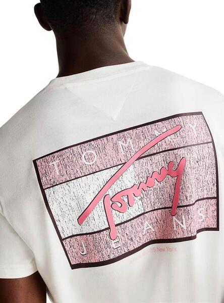 Tommy Jeans T-Shirt. Flag-Modell. Weiß. Kurzarm. Rundhalsausschnitt. Grafischer Aufdruck auf der Brust und dem Rücken. Regular Fit.