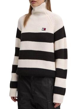 Tommy Jeans Pullover. Modell Center Flag. Farbe blau. Farbblock-Design auf Vorder- und Ärmelseite. Runder Ausschnitt. Lange Ärmel. Lockere Passform.