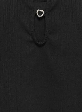 Top Only. Modell Grene. Schwarze Farbe. Runder Halsausschnitt. Kurze Ärmel. Geripptes und elastisches Gewebe. Gekürzt. Ausschnitt am Rücken mit Herzförmigen Schnallen.
