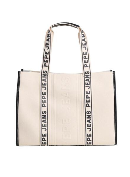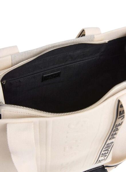 Tasche Pepe Jeans. Modell Zenda Merit. Farbe beige. Details aus Kunstleder. Außentasche mit Reißverschluss. 2 obere Griffe. Verstellbarer Schultergurt. Hauptfach mit Innentasche mit Reißverschluss. Maße: 42,5x16,5x34 cm.
