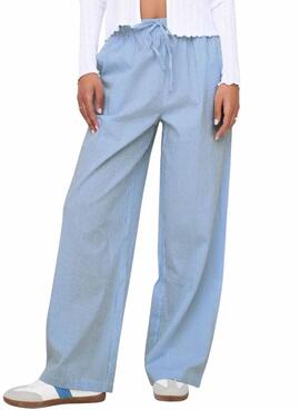 Only Hose. Modell Marine. Farbe grau. Elastischer Bund mit Kordelzug verstellbar. Design mit Falten. Hohe Taille. Weites Bein.