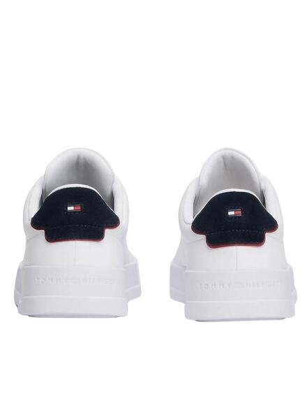Turnschuhe Tommy Hilfiger. Modell Court. Farbe weiß. Schnürverschluss. Markenlogo an der Seite und Ferse. Gummisohle.