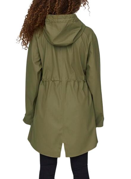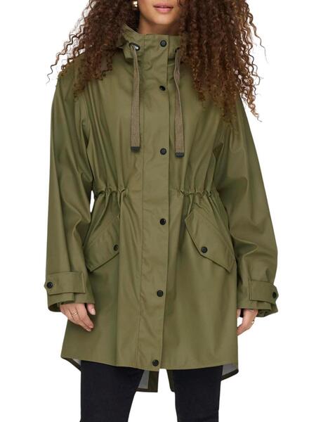 Regenjacke Only. Modell New Station. Farbe grün. Verstellbare Kapuze mit Kordelzug. Knopfverschluss. Seitentaschen. Wasserdichtes Material.
