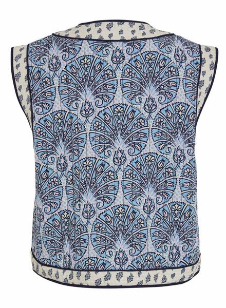 Vila Weste. Modell Delphine. Farbe Blau. Ohne Verschluss. 2 Seitentaschen. Kombiniert verschiedene Muster. Ärmellos. Regular fit.