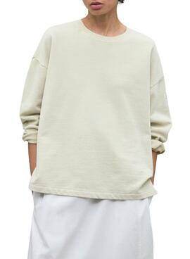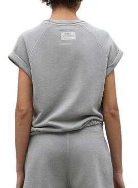 Sweatshirt Ecoalf. Graue Farbe. Rundhalsausschnitt. Kurze Ärmel. Ärmel mit Umschlag. Verstellbarer Saum mit Schnürsenkeln. Gewaschenes Gewebe. Das Modell trägt Größe S.