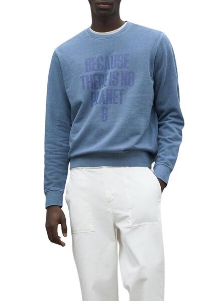 Ecoalf Sweatshirt. Blaue Farbe. Hergestellt aus recyceltem Stoff. Reguläre Passform. Text: Because there is no planet B auf der Vorderseite gedruckt. Lange Ärmel. Runder Halsausschnitt. Gewaschenes Gewebe. Markenlogo auf dem Ärmel.
