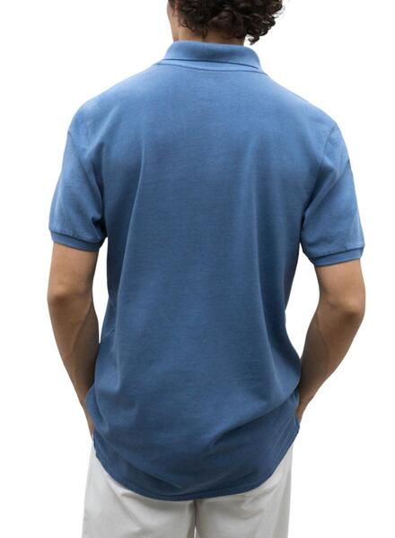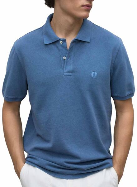 Polo Ecoalf. Modell Ted. Farbe blau. Kurze Ärmel. Polokragen. Leiste mit 2 Knöpfen. Logo gestickt auf der Brust. Regular Fit.