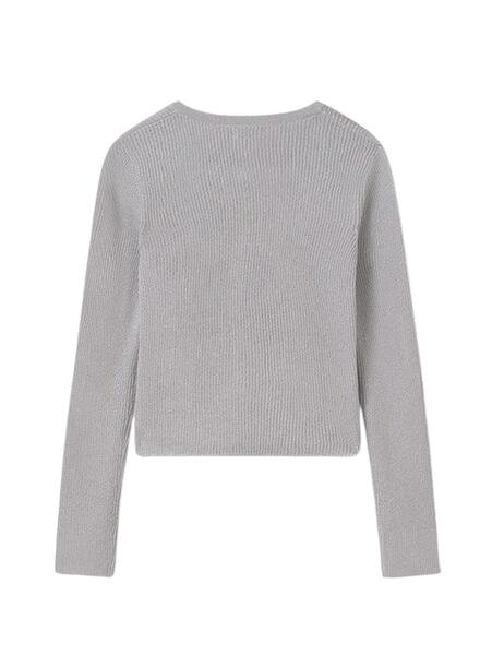 Mayoral Jacke. Runder Ausschnitt. Lange Ärmel. Geripptes Strickmaterial. Vorderverschluss mit Knöpfen. Silberfarben.