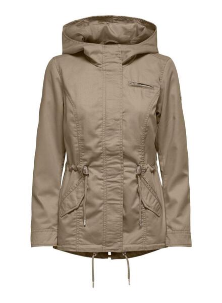 Parka Nur. Modell Lorca. Farbe Braun. Lange Ärmel. Mit Kapuze. Verschluss mit Knöpfen und Reißverschluss. 3 Taschen. Schnur zum Anpassen in der Taille.