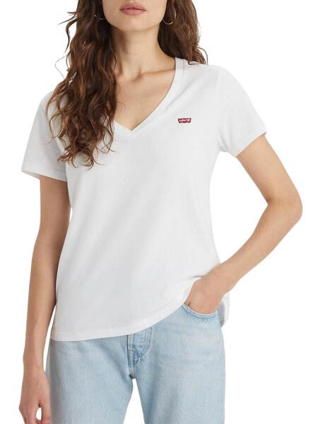 Levi's T-Shirt. Modell Perfect V Neck. Farbe Weiß. Kurze Ärmel. V-Ausschnitt. Reguläre Passform. Mit Stickerei des ikonischen Batwing-Logos auf der Brust. Baumwolle stammt von der Better Cotton Initiative (BCI).