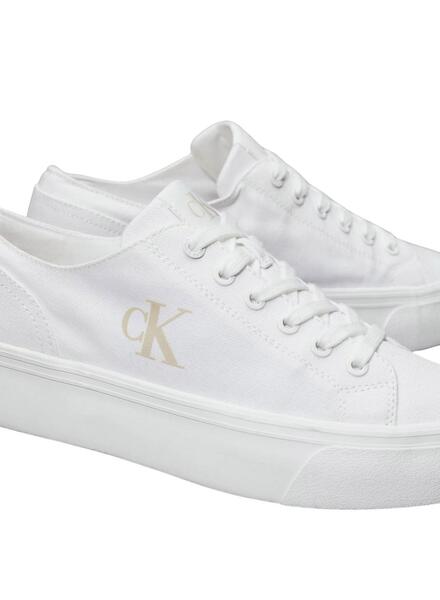 Sneakers Calvin Klein. Modell Flatform Low. Farbe weiß. Schnürverschluss. Markenlogo an der Seite. Mit Plateausohle. Gummisohle.
