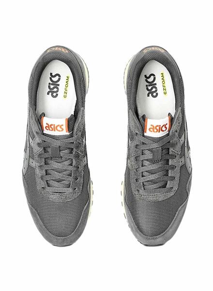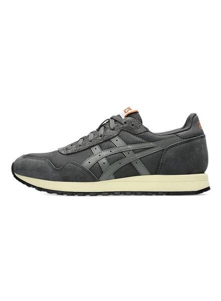 Asics Turnschuhe. Modell Tiger Runner. Graue Farbe. Markenlogo an der Ferse. Schnürverschluss. Obermaterial aus verschiedenen Materialien kombiniert. Gummisohle.