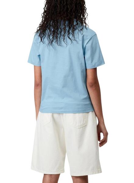 T-Shirt Carhartt. Modell Script. Farbe blau. Kurzarm. Rundhalsausschnitt. Logo bestickt auf der Brust. Regular Fit.
