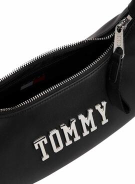 Tommy Jeans Tasche. Modell Überall. Farbe Schwarz. Schultergurt. Reißverschluss. Baguette-Stil. Silbernes Metalllogo. Maße: 26 × 9,5 × 17 cm.