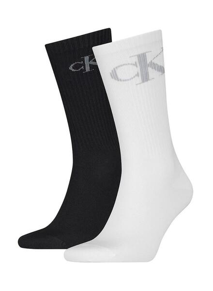 Zweierpack Calvin Klein Socken. Modell Shadow. Farben: schwarz und weiß. Intarsia-Logo. Hoher Bund. Geripptes Beinmaterial. Verstärkte Zehen- und Fersenpartie.