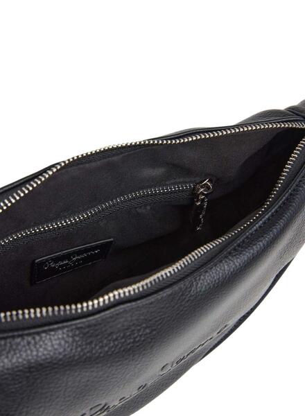 Handtasche von Pepe Jeans. Modell Nadine. Farbe schwarz. Reißverschluss. Abnehmbarer Schultergurt. Halbmondform. Logo auf der Außenseite graviert. Maße: 16 x 33 x 10,5 cm.