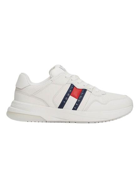 Tommy Jeans Turnschuhe. Retrocasual Modell. Weiß Farbe. Logo seitlich mit emblematischer Flagge. Schließung mit Schnürsenkeln. Sohle mit Volumen. Runner-Stil.