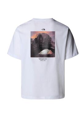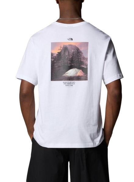 T-Shirt The North Face. Modell Camping. Farbe weiß. Runder Ausschnitt. Kurze Ärmel. Lockere Passform. Markenlogo auf der Brust gedruckt. Illustration auf der Rückseite gedruckt.