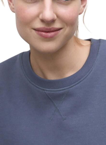 Pullover Ecoalf. Marineblau. Gewaschenes Gewebe. Runder Halsausschnitt. Rippabschlüsse. Überschnittene Schultern. Text: Because there is no planet B auf dem Rücken gedruckt. Markenetikett auf einem Ärmel. Seitenschlitze.