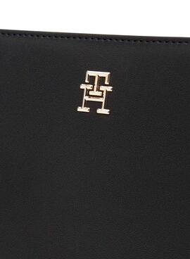 Handtasche Tommy Hilfiger. Modell Logotape. Farbe schwarz. Hauptverschluss mit Reißverschluss. Zwei Fächer ohne Verschluss. Metallenes Logo in goldener Farbe. Verstellbarer Schultergurt. Fassungsvermögen von 1 Liter. Maße: 20,5 x 8 x 14,5 cm.