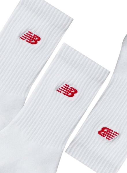 Socken New Balance. Weiß. Dreierpack. Über dem Knöchel lang. Verstärkte Zehen und Fersen. Weiche Innensohle. NB-Logo auf Patch. Atmungsaktives Baumwollgewebe.