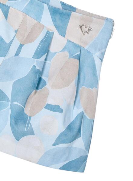 Rockhose von Mayoral. Blumendruck. Hohe Taille. Seitlicher Reißverschluss. Falten Details. Kurzes Format. Markenperle an der Taille angenäht.
