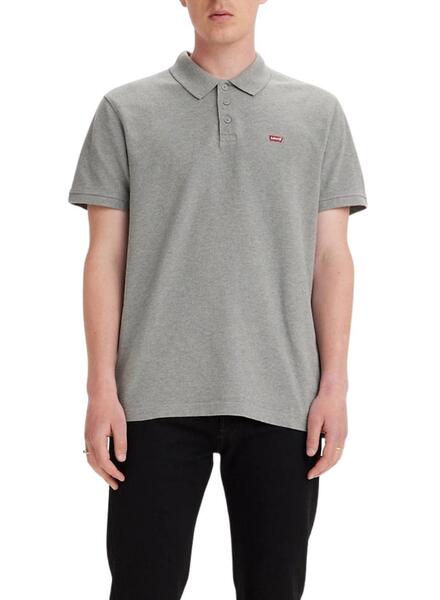 Levi's Polo. Modell Housemark. Graue Farbe. Normale Passform. Kurze Ärmel. Hemdkragen mit Knopfverschluss. Ungedehntes Piqué-Gewebe.