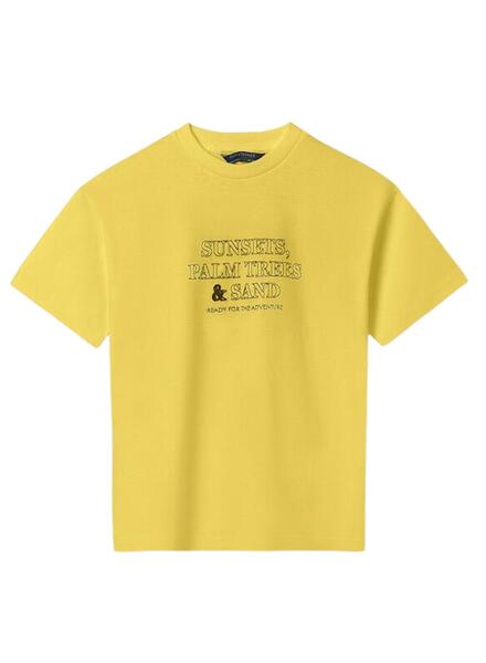 T-Shirt Mayoral mit gelb besticktem Text für Jungen.