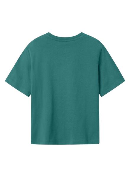 T-Shirt Name It. Farbe grün. Rundhalsausschnitt. Kurzarm. Reguläre Passform. Überschnittene Schultern. Aufdruck auf der Vorderseite.