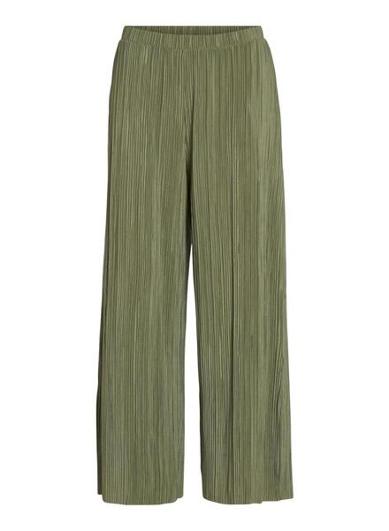 Hose Vila. Grüne Farbe. Weites Bein. Hoher Gummibund. Plissierter Stoff. Regulärer Schnitt. Das Model trägt Größe S.