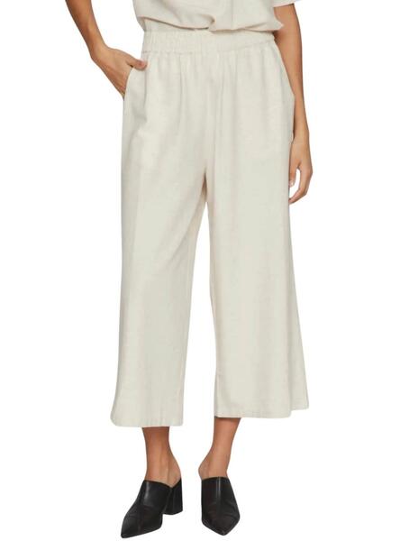 Hose Vila. Modell Viprisilla. Farbe Beige. Grundstil. Elastischer Bund. Seitentaschen. Culotte-Stil. Gekürzte Länge.