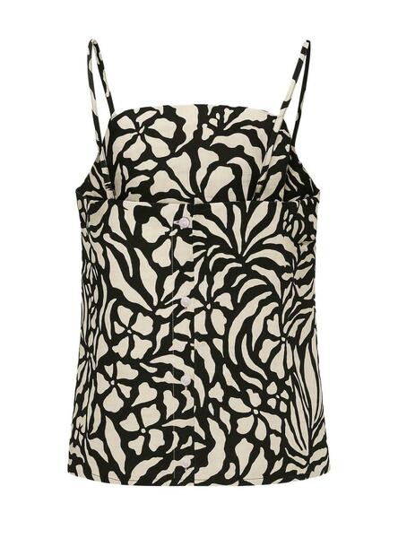 Top Only . Modell Kaleen. Farbe Schwarz. Ärmellos. Feine verstellbare Träger. Knopfverschluss am Rücken. Quadratischer Ausschnitt. Reguläre Passform. Blumenmuster.