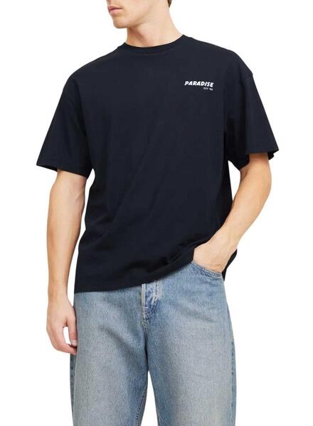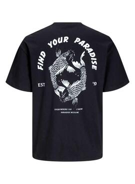 T-Shirt Jack and Jones. Modell Charge. Farbe schwarz. Rundhalsausschnitt. Kurze Ärmel. Illustration auf der Rückseite mit weißen Details gedruckt. Nachricht auf der Brust gedruckt. Lockere Passform.