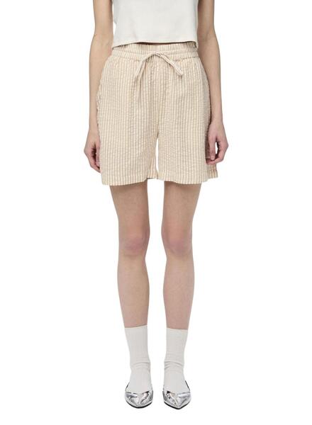 Bermudas Stücke. Modell Sally. Farbe beige und toasted. Gewebe mit vertikalen Streifenmuster. Seitentaschen. Elastischer Bund mit verstellbarem Kordelzug. Pyjama-Stil.