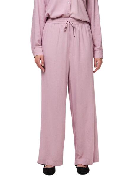 Hose Pieces. Modell Pia Wide. Farbe rosa. Weite Passform. Seitentaschen. Fließendes und leichtes Gewebe mit Leinen. Elastischer Bund mit verstellbarem Kordelzug. Basic-Stil.