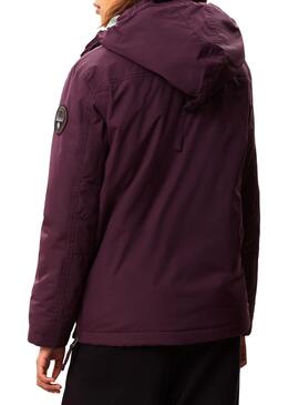 Jacke Napapijri. Rainforest Winter. Violette Farbe. Seitentaschen mit reißverschluss. Einstellbare Kapuze Pocket mit Klappe und reißverschluss. Logo in der Tasche. Seitliche Öffnung. Nähte versiegelt. Fleece-Futter Einstellbarer Bass. Wasserdicht